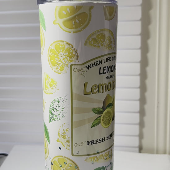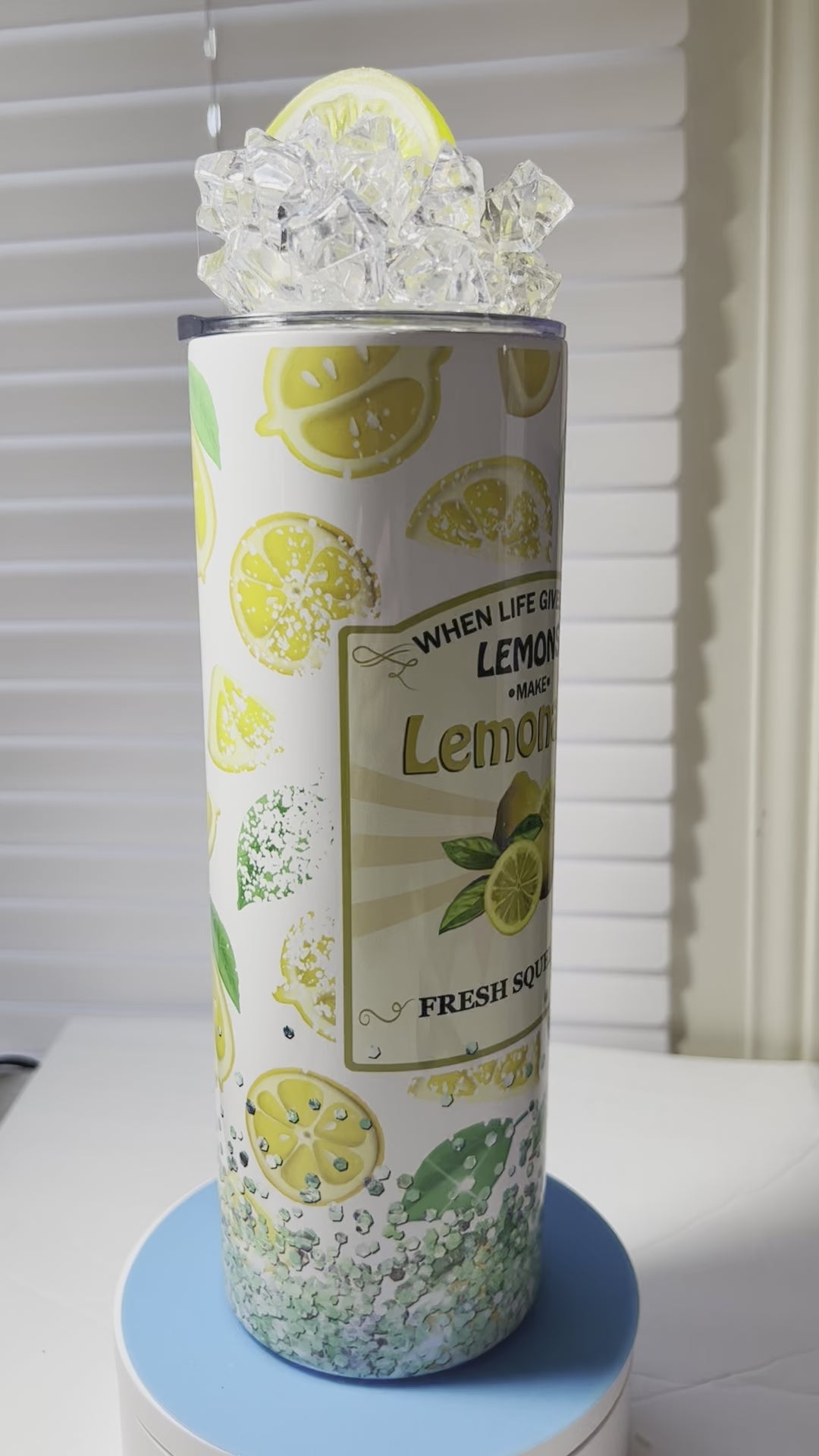 20oz double wall tumbler with removable lid. Keeps drinks cold or hot for up to 6 hours