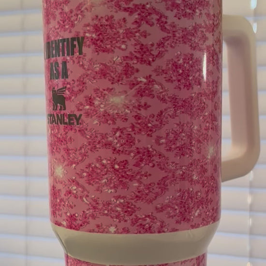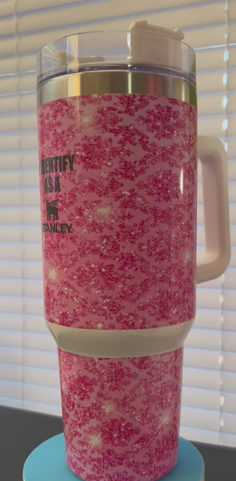 40 oz tumbler with handle and lid. Can make any any color! with the words "I identify as a Stanley"