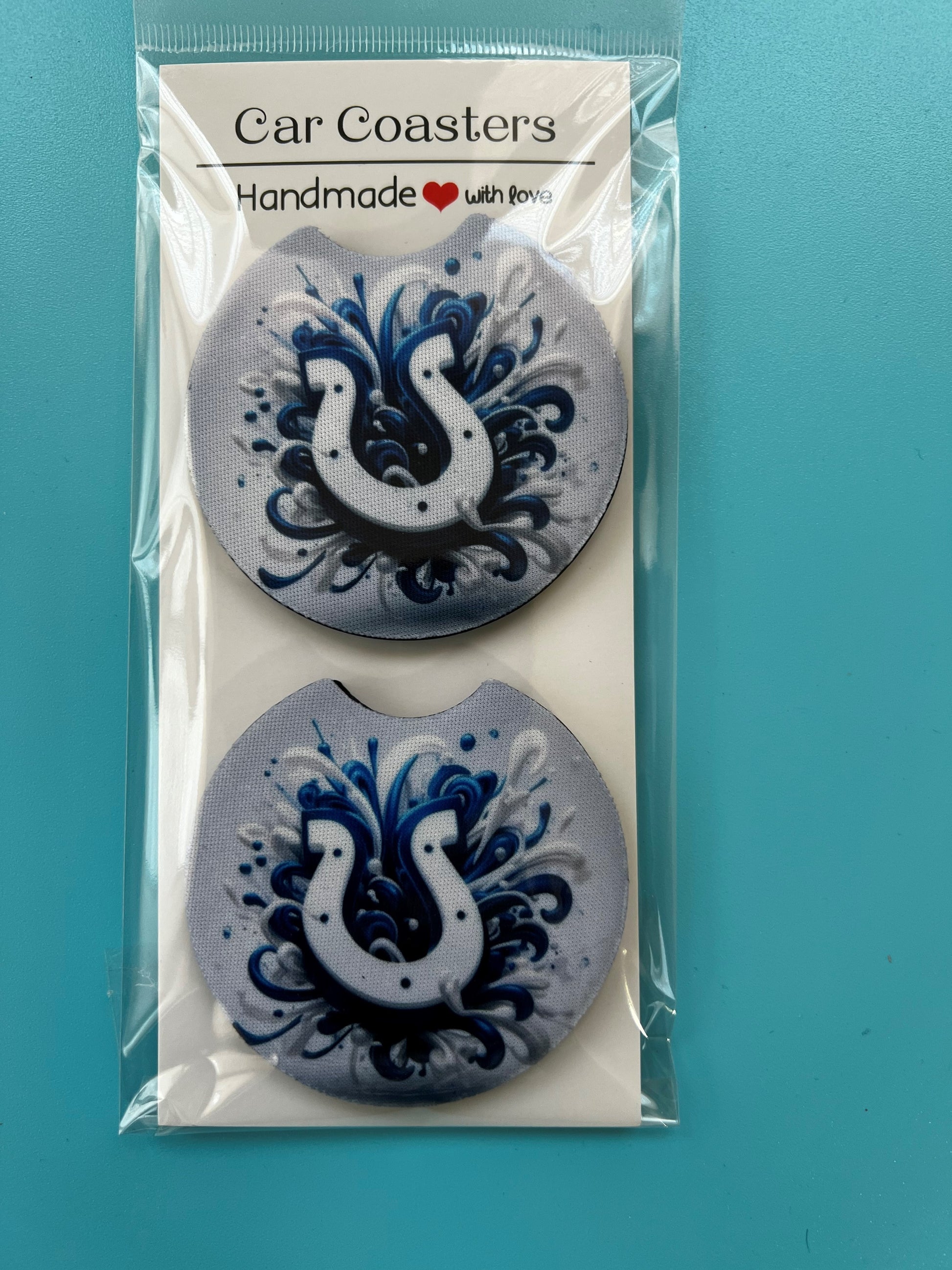 Neuroprene car coasters. Make great stocking stuffers! Absorbs moisture. Fits most cup holders including car seats