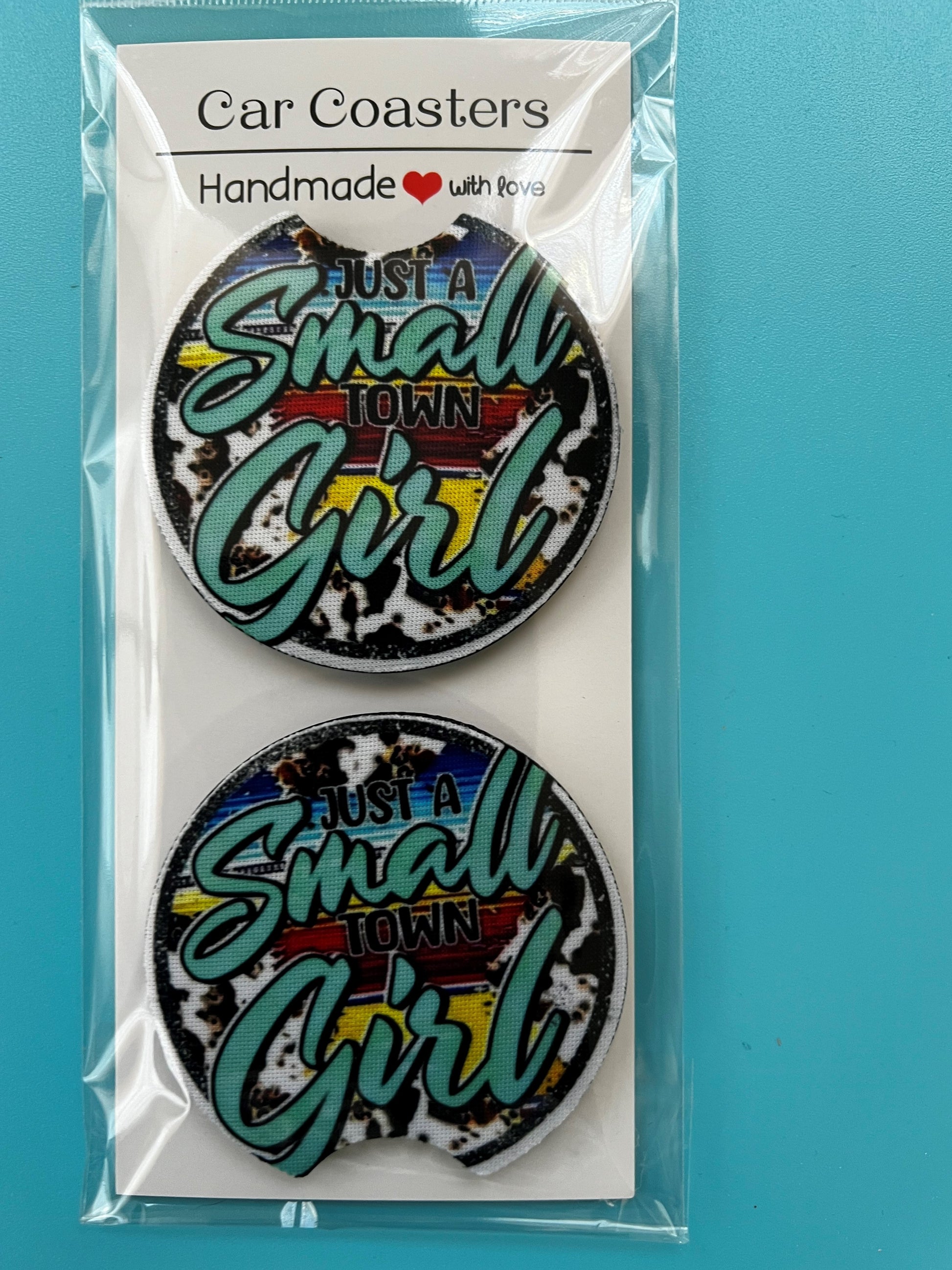 Neuroprene coasters. Great stocking stuffers! Absorbs the moisture from your drink. Fits most cup holders including car seats!